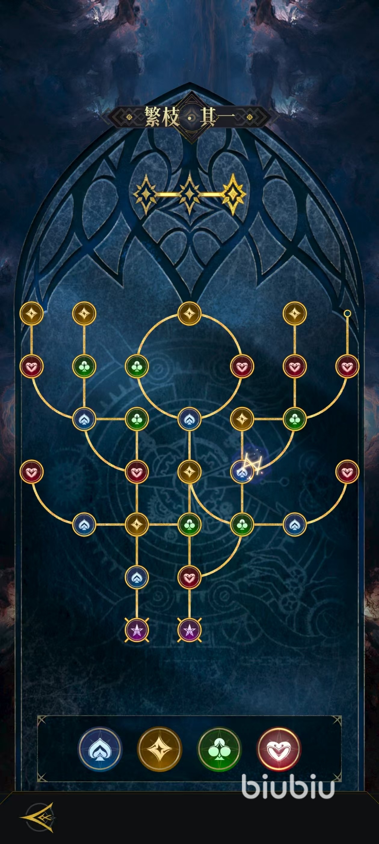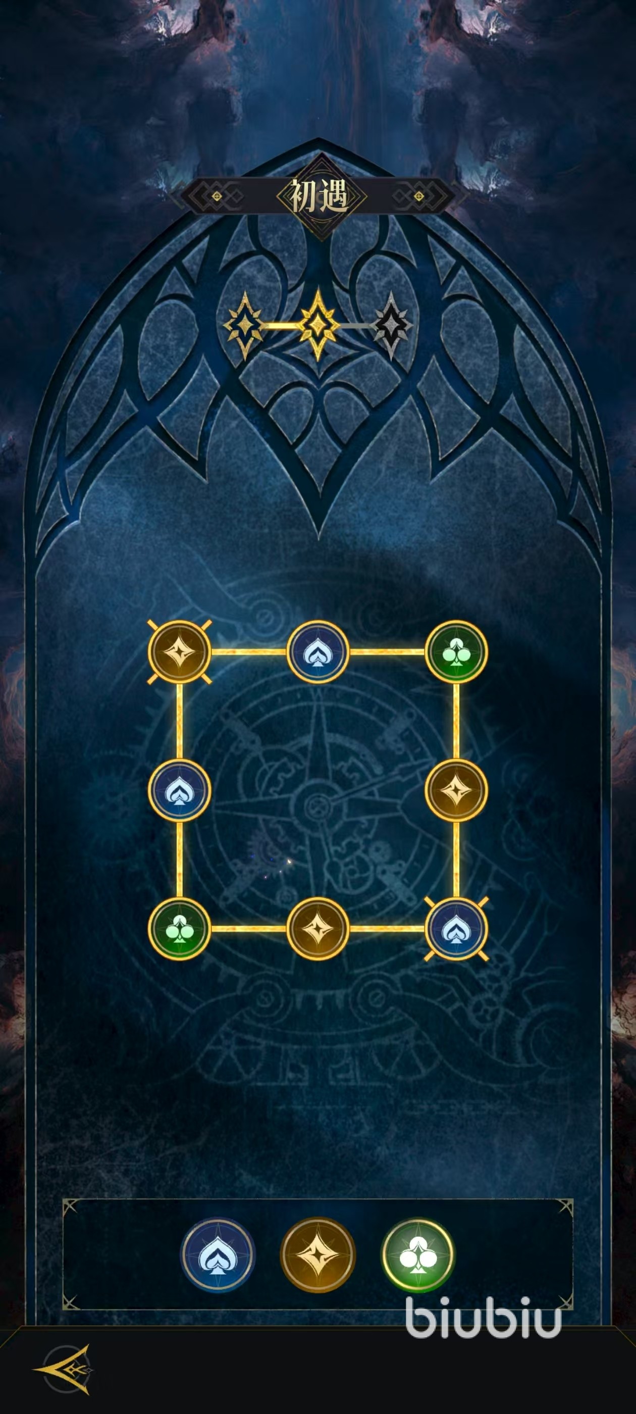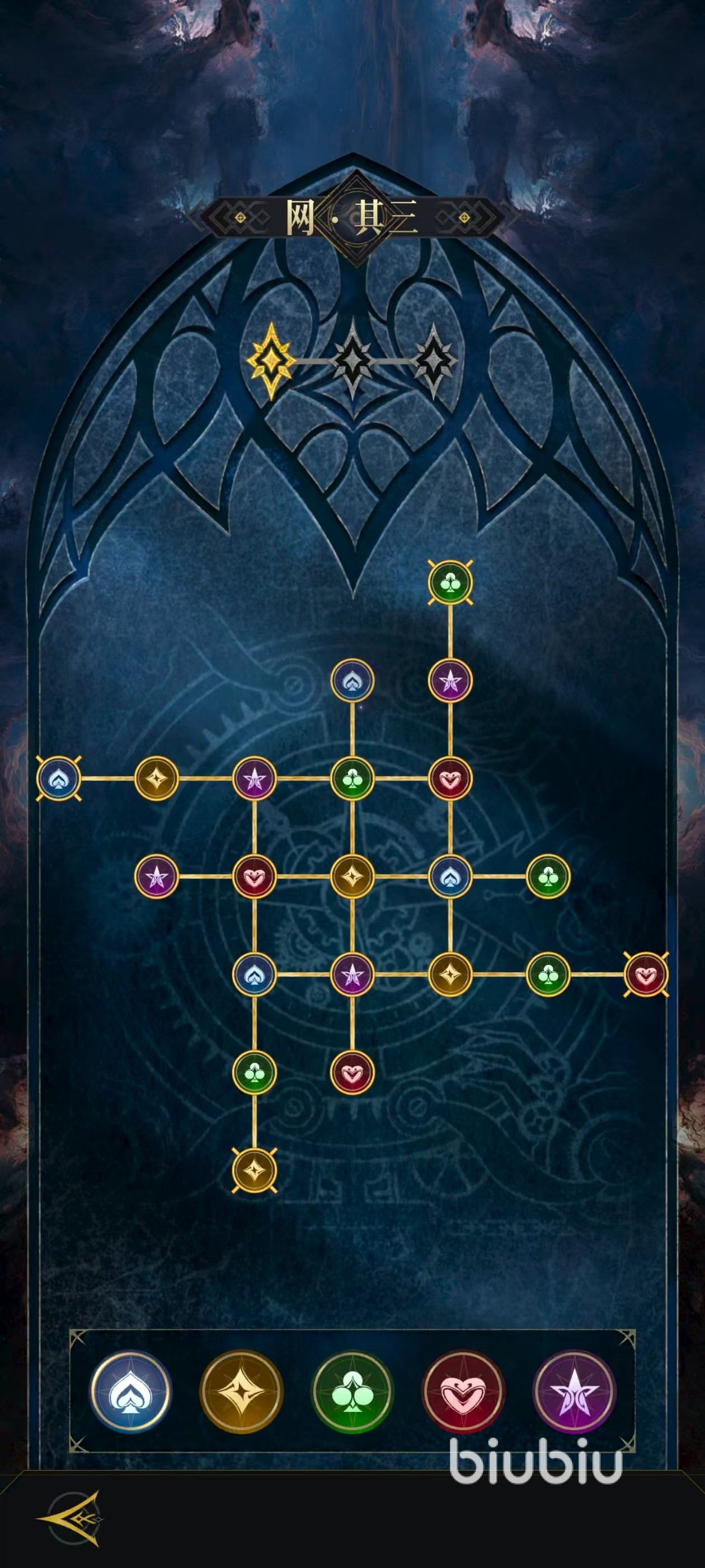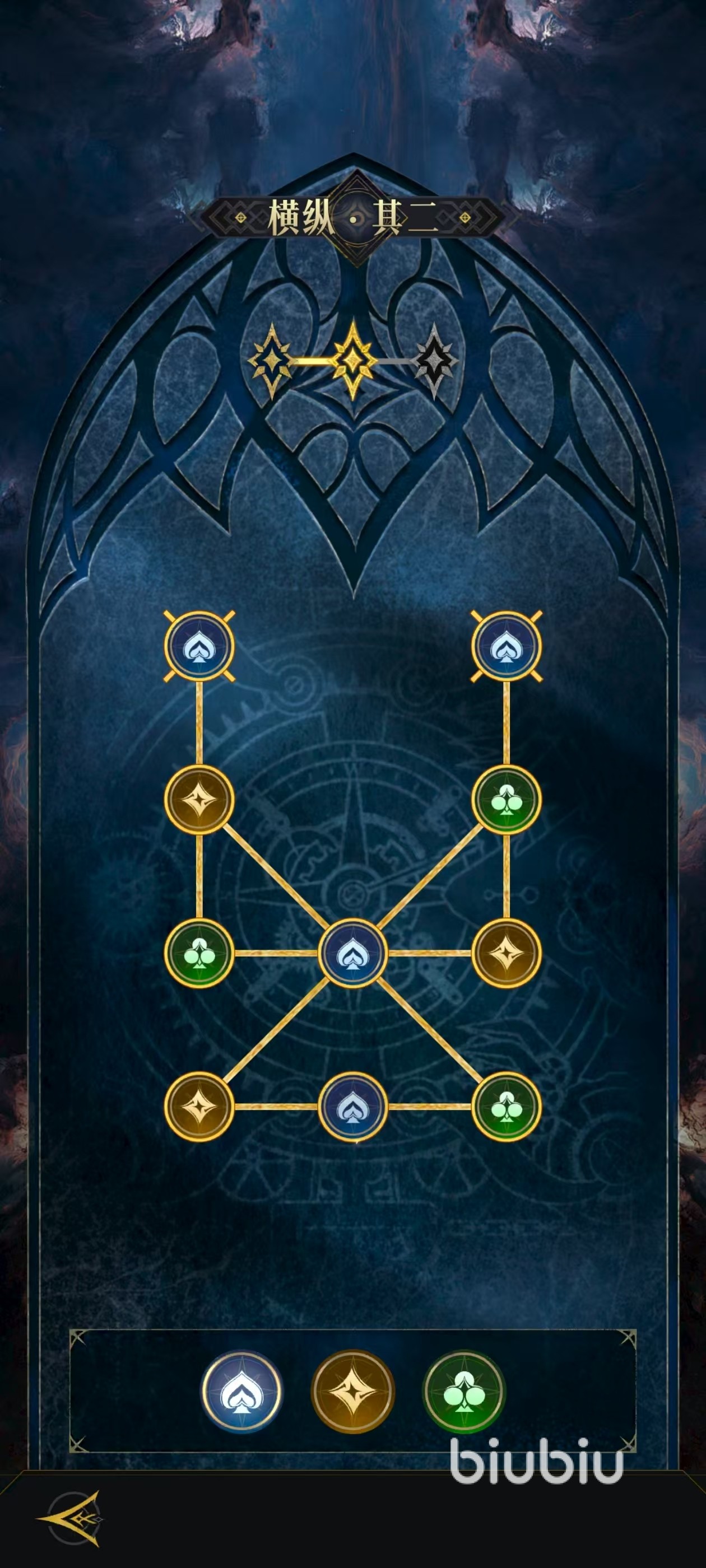 这项活动是分为不同的章节。其中前两章包括初遇,纵横其一,纵横其二,纵横其三,风轮其一,曲径其一,同心其一,涟漪其一和镜其一。这两章是比较简单的,随着点位数量的增加,上升的组合会呈现指数级增长,很难在短时间内列举所有的组合,所以要花费一些时间不断进行尝试和推理,这也是游戏中非常消耗时间的一种玩法。