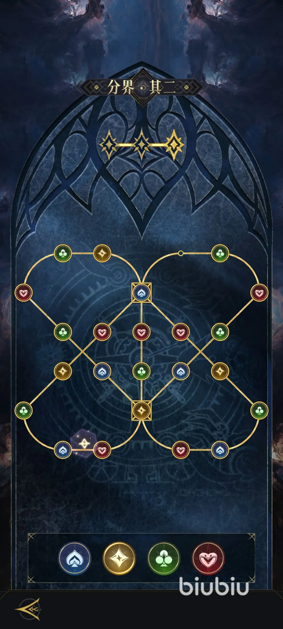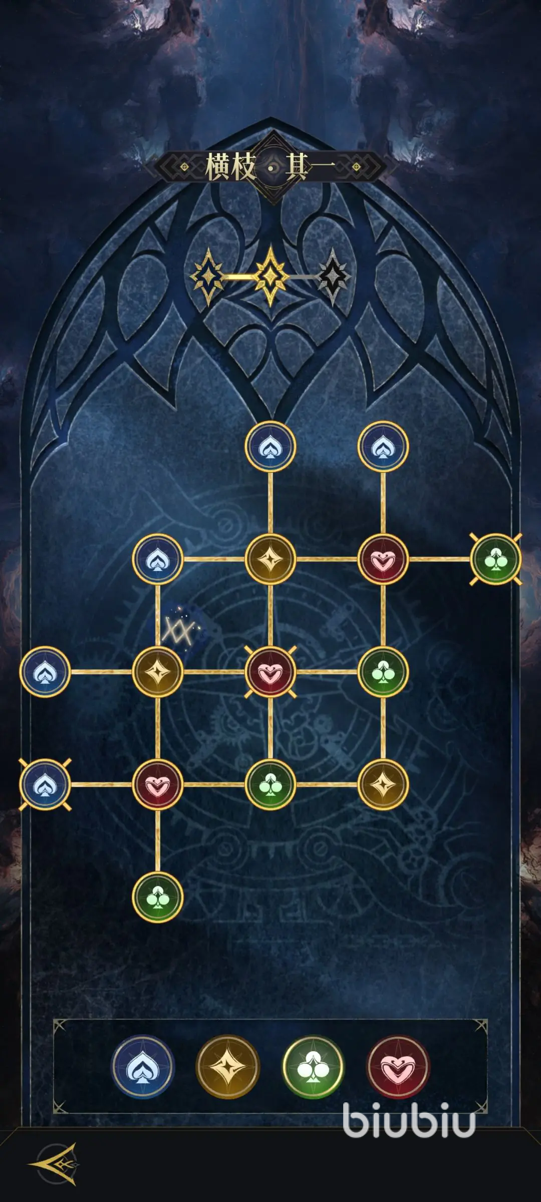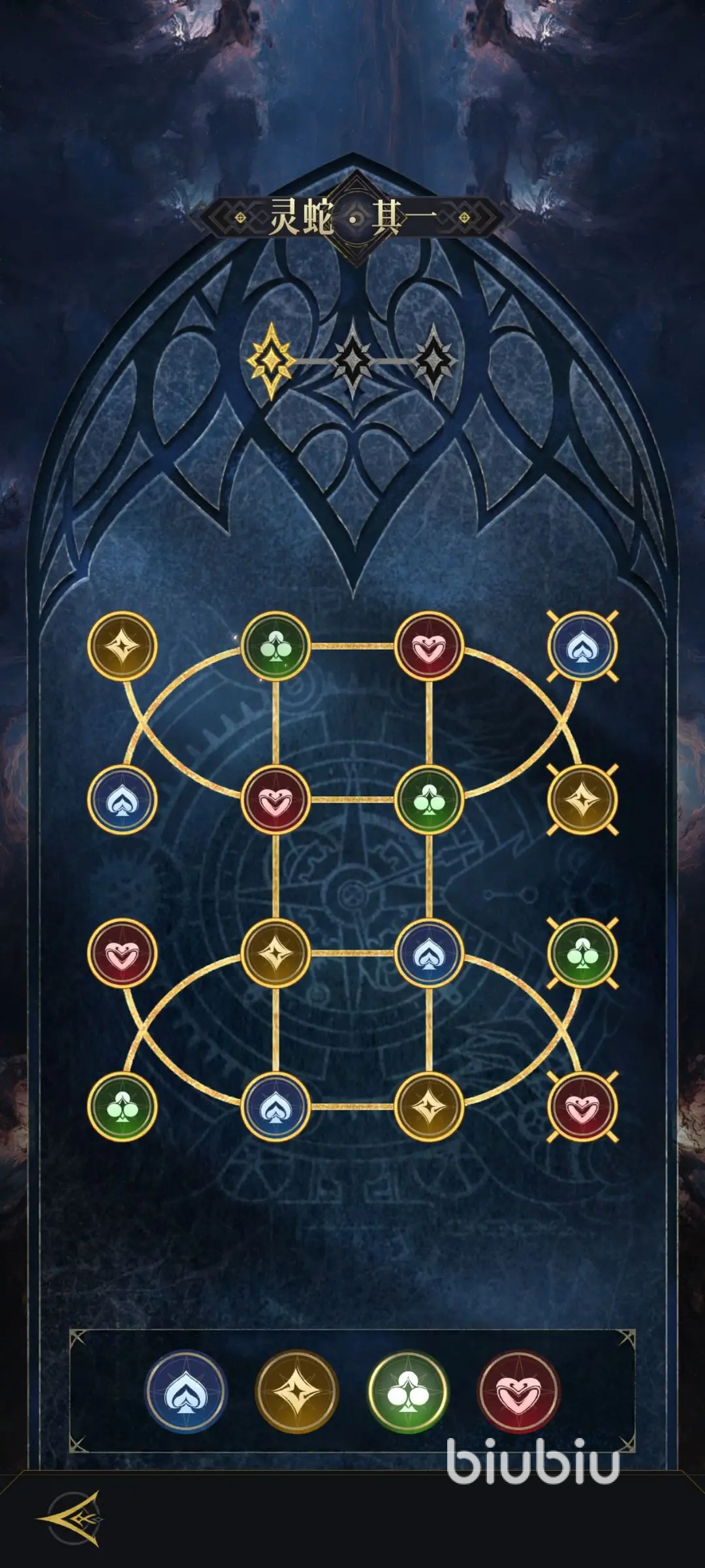 横枝其一与灵蛇其一:这两个关卡就是挑战的入门内容,一般难度相对比较低,重点就在于一定要让玩家去熟悉基础的机制。横枝其一这一个关卡并没有什么复杂的地方技能,主要的核心就是把小怪物全部的打败。建议选择梅花阵营的封夷在开局时就可以获取,所以当做主c之后实力会比较出色。可以搭配方块阵营中的雅典娜可以有效提供护盾辅助,通常一轮到两轮的技能循环就可以通关。