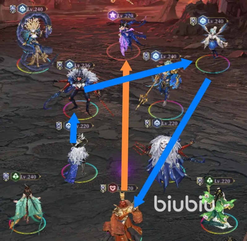 需要一定的抽卡运气,典型的“强控爆杀队”。阎罗王的开局钩子能直接点杀敌方核心,控到死一点也不夸张。涅墨西斯依靠对角穿梭补伤害,阿努比斯则具备高爆发与残血收割能力,三者的组合经常能在开局8秒内打崩敌人。尤其适合零氪玩家在精英关、塔类副本中“逃课”,因为只要核心C位被控到死,剩余敌人再高战力也能被慢慢磨掉。