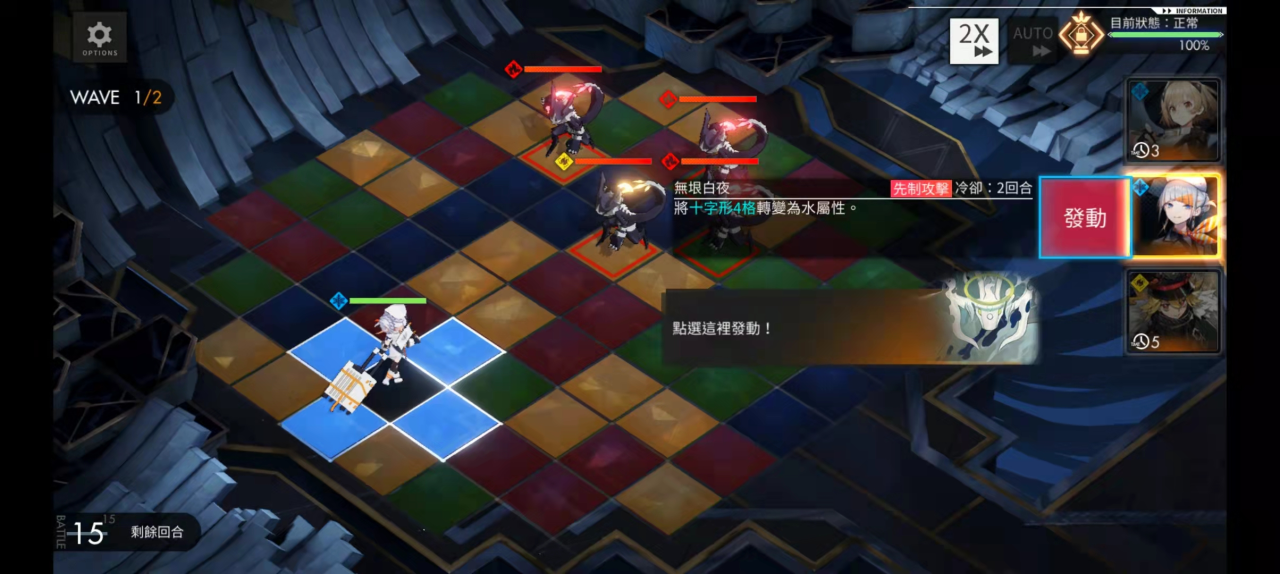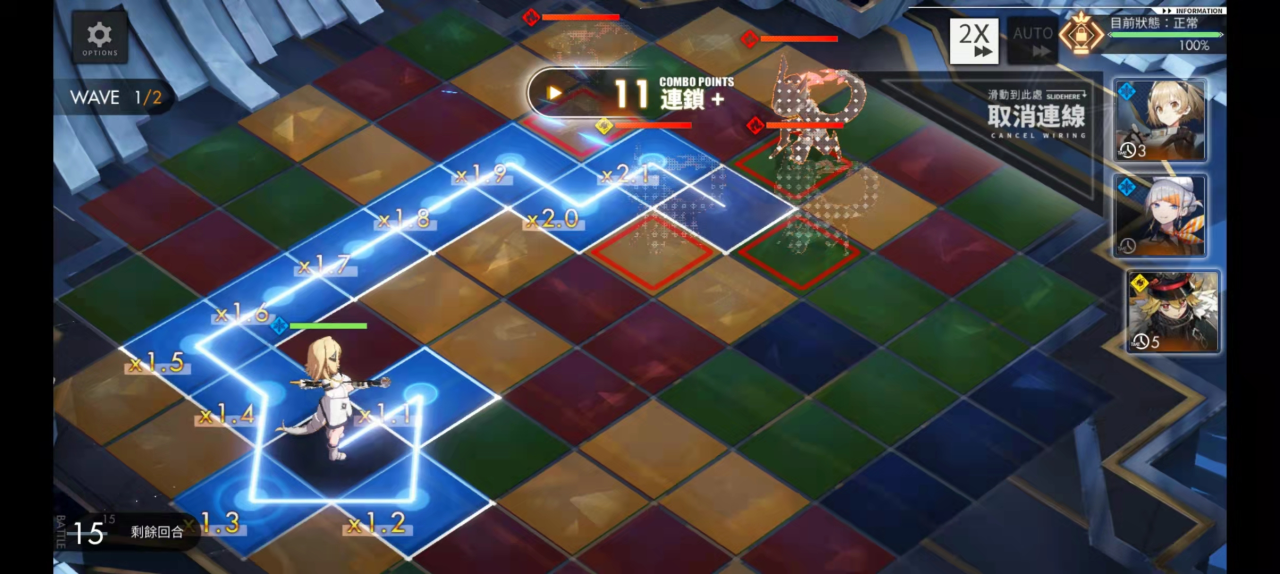 1、第一种方法相对来说要简单一点,队长在画线走路的时候先随便画出一条路径,然后重新退回到起始队长的位置。如此一来这个回合之中队伍是不会行动的,而且也不会释放热河的技能。