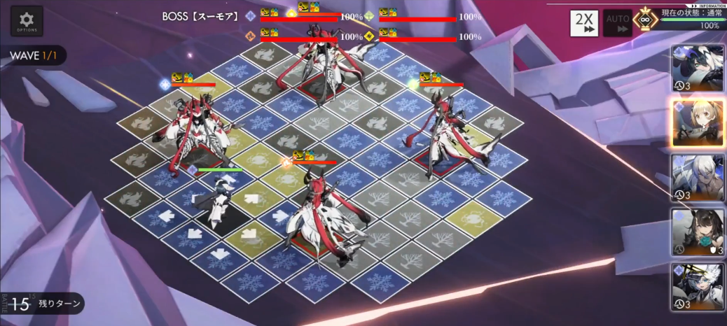 3、要注意属性之间的克制关系,所以推荐一个一个地,迅速集火自己耐性属性之外的敌人。在第一轮的时候,多观察一下地图的格子,有选择性的优先集火打哪个属性的BOSS。比如大家队伍中的雷比较多,但是火属性BOSS旁边刷了三个怪物,那么小编在第一轮先用了技能去打火属性BOSS,而不是属性上更克制的水属性BOSS。