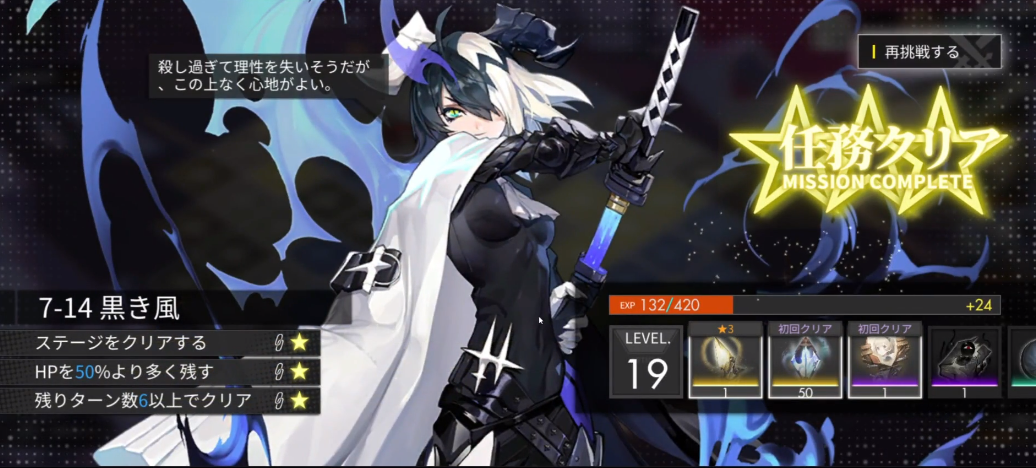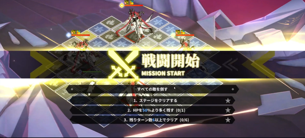 1、三星达成:消灭所有敌人即可过关,清场可得到一星,剩下的要求为HP超过50%(0/1)、剩余轮数需超过6轮或以上(0/6)。