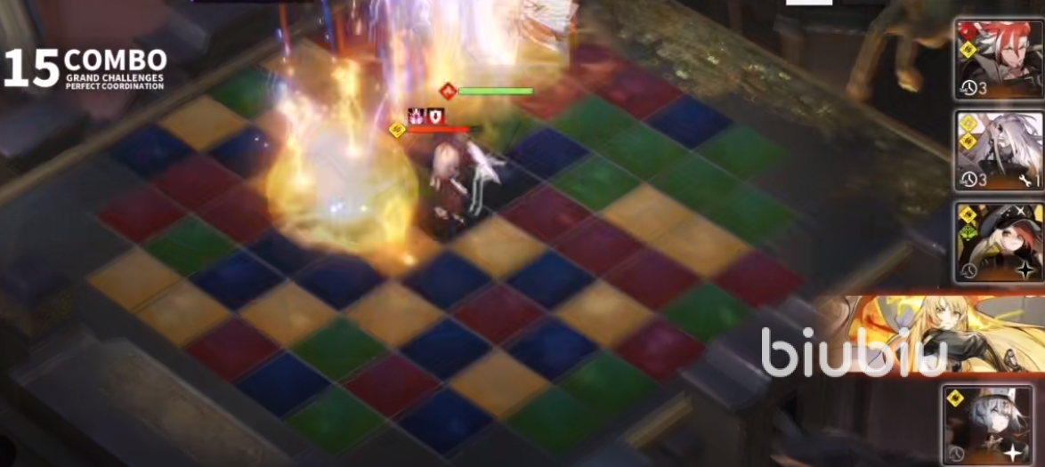 主动技能:少女终极熔电。将最近的4个火或者水属性的格子转化为雷属性,初始已拥有先制攻击的属性,开局就能释放。两回合CD也比较短,在玩纯色时候很好用。
