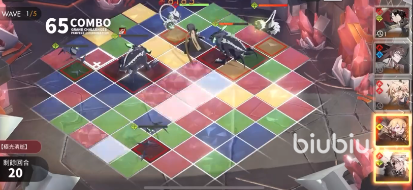这一套阵容较为暴力,舍去拥有回复功能的奶妈,尽可能拉高整体的输出能力,比较适用于火属性格子较多,速战速决打BOSS的关卡,注重队伍的灵活性与输出力,一套连锁下去可以一回合结束战斗。如果玩家有其他更好的输出打手,可以将雷霆替换下来,4+1混搭可选择的角色有很多,其实跟纯色差不多。