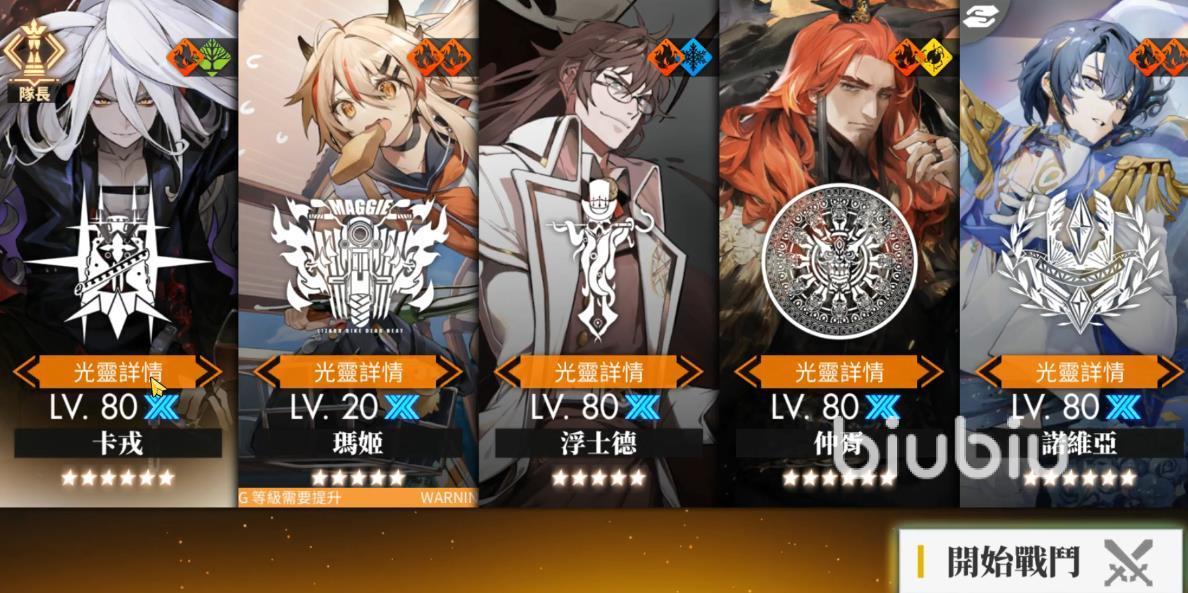 这一套是用起来非常顺手的水火队,两个属性主输出打手分别放在对手与队尾,中间上转色辅助与奶妈,如果玩家没有抽到水刀,可以用满破的狙击女主代替,过完主线就能满破的薇丝其实伤害也不俗。