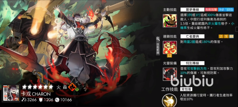 以上就是小编给各位玩家分享的白夜极光卡戎配队攻略,卡戎因拥有强势的输出力,组队一般都是在队长位或者放在队尾补打连锁伤害,组纯红色队伍伤害高,杂色队功能强,各位玩家可根据自己的图鉴情况组队哦。