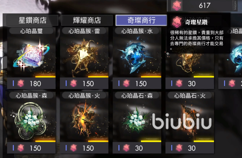 每种心珀晶簇的售价都是150个奇灿星钻,可突破任一非限定的6星角色,而限定的角色就要换售价180个奇灿星钻的高级版。