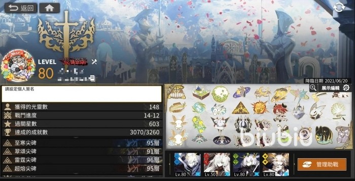 玩家也可以在信息栏里设置“个性签名”,来展示自己,同时把一些强力、功能型角色设置成主要助战,这样就容易吸引到更多玩家来添加你了!