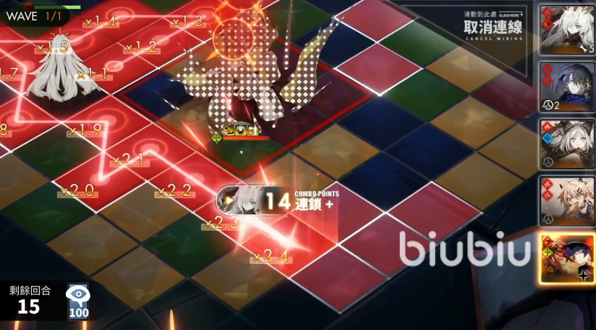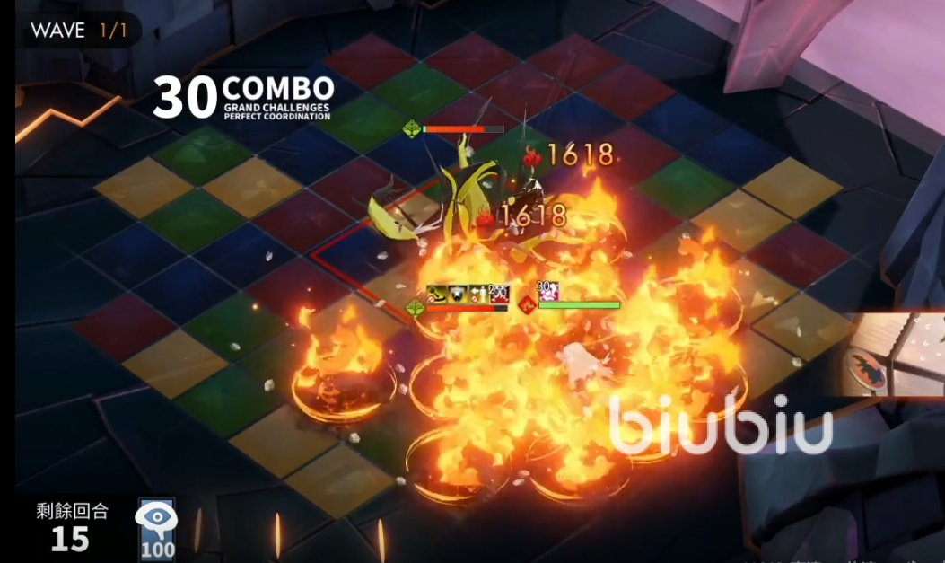 主动技能:蜥蜴爆弹。十字方向大范围铺路,让地图其他红色格子相连,被包围的时候,能够快速扩展队伍输出空间,打出一条生路。因为这技能的初始cd是5回合,一局战斗顶多用两三次,比较建议玩家掐着技能等待多角色大招一起使用,让输出最大化。