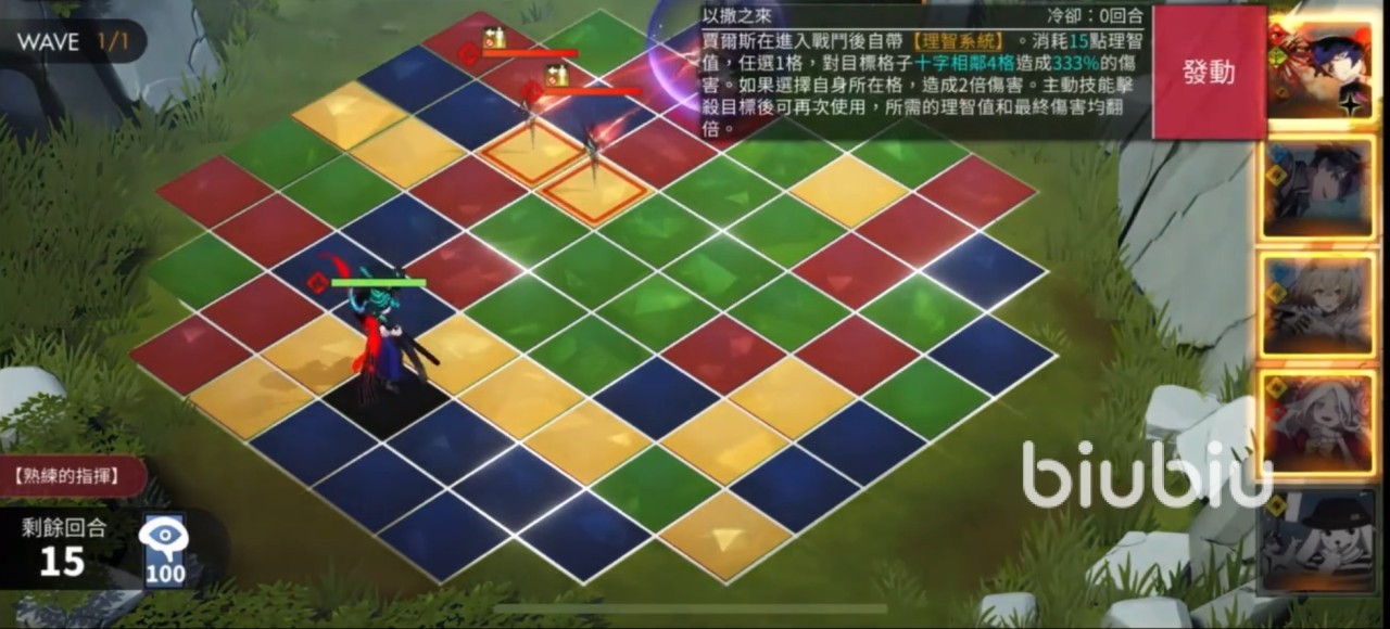 这是个火队的搭配,队长是醒山,他的主属性是火,副属性为雷,总体伤害非常高,比卡隆还要高出很多,他的主动技能可以从自身附近的十字4格子中选择一个方向,朝着这个方向进行扇形范围的输出,可以打出爆炸级别的伤害,该技能二阶觉醒后,他攻击所选择的格子范围将增加至8格子,伤害也得到一定的加成。而醒山的连锁技能是可以连击,随着技能不断进阶,连锁的格子数会有所增加,攻击范围与伤害都会提升,此外,醒山适合打近战,他的每一种技能都可以对敌方造成崩塌的效果,极其厉害。