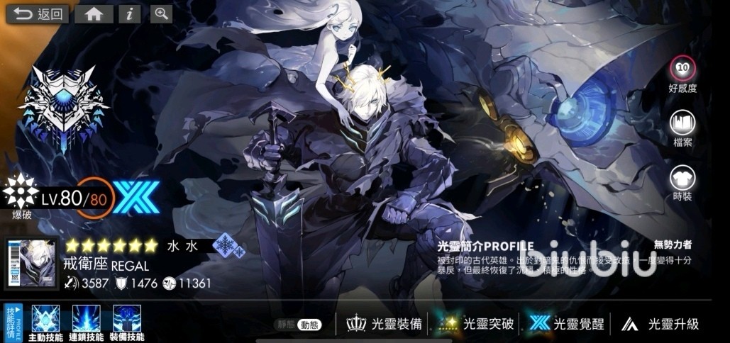 游戏里禁卫座的职业定位是爆破,在各方面属性中,他的爆破属性是尤为突出,攻击力也是很高的,他在八十级10装备10好感度的情况下,战斗力达到了3587,比镇魂座要高上许多,他平A与连锁技能都是十分厉害的,不得不说,禁卫座的确特别适合当队长。