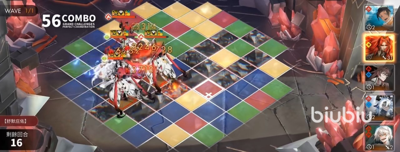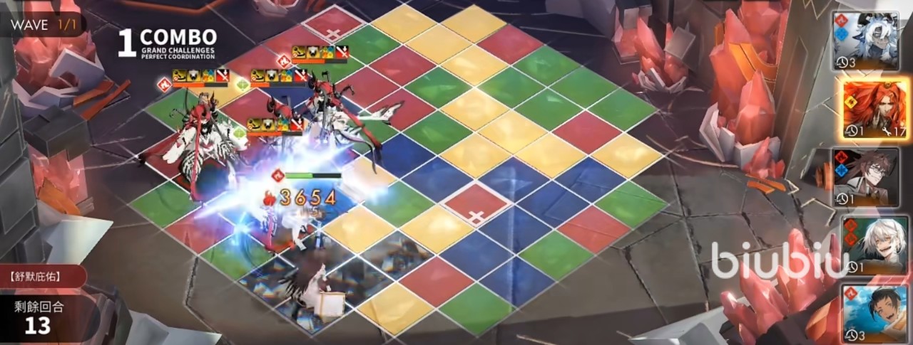 这个阵容是围绕吉纳维芙所打造的,不过吉纳维芙并不是队伍的核心,她与艾希都是队伍的转色,有着不错的续航能力,其中吉纳维芙可以在开局战斗中抢到先机,不过,这一角色必须得到二阶觉醒才可以体现出她的实力,吉纳维芙处于二阶觉醒状态时,攻击力能够直接达到1603,而三阶觉醒之后,战斗力会更高,小伙伴们在前期时要对她多多培养,此外,她拥有的位移能力刚好弥补了火队位移不足的弱点。而艾希是固定转四格的转色,格子转的越多,己方的输出就会越高,艾希与吉纳维芙的配合的确不错。小不点虽然只是个三星角色,但是她的连锁技能可以按照菱形格子进行攻击,这样的攻击模式让小不点能够对格子进行转换,让小不点充当转色的角色也是可以的。