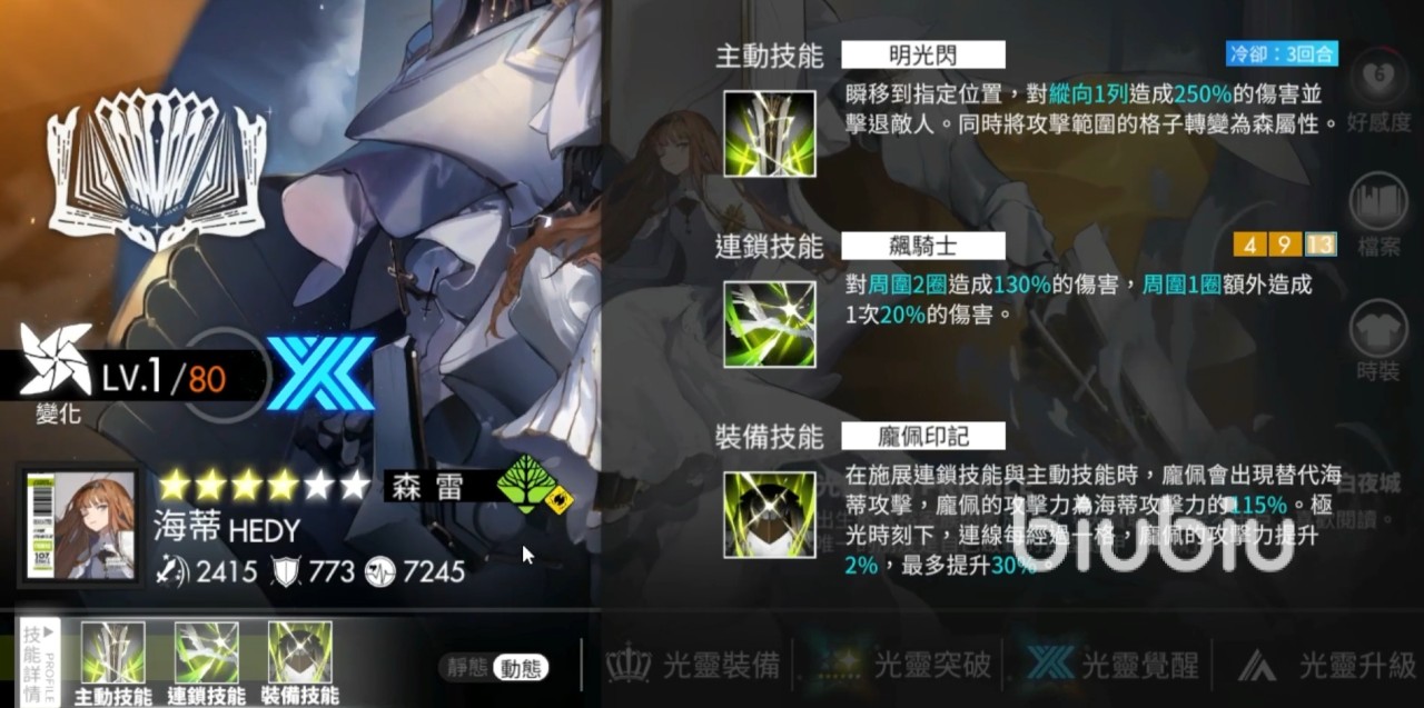 在阵容中,海蒂的职位是转色,也可以当个辅助,她的主要作用就是去提高阵容整体的灵活性以及制造森属性的格子,若是作为辅助的话,海蒂的输出伤害可以增加队伍的整体输出收益。实际上,海蒂的基础属性面板是很优秀的,没有拉胯的地方,可以说是一名全能型的光灵,在强化后能够拥有强大的爆发能力,海蒂比较依赖极光和连锁输出,平A普攻伤害不高,因此她的提升空间不是很高,同时小伙伴们要给她搭配一个合适的真人阵容才能让她战斗中有出色的发挥。