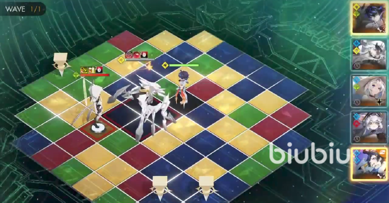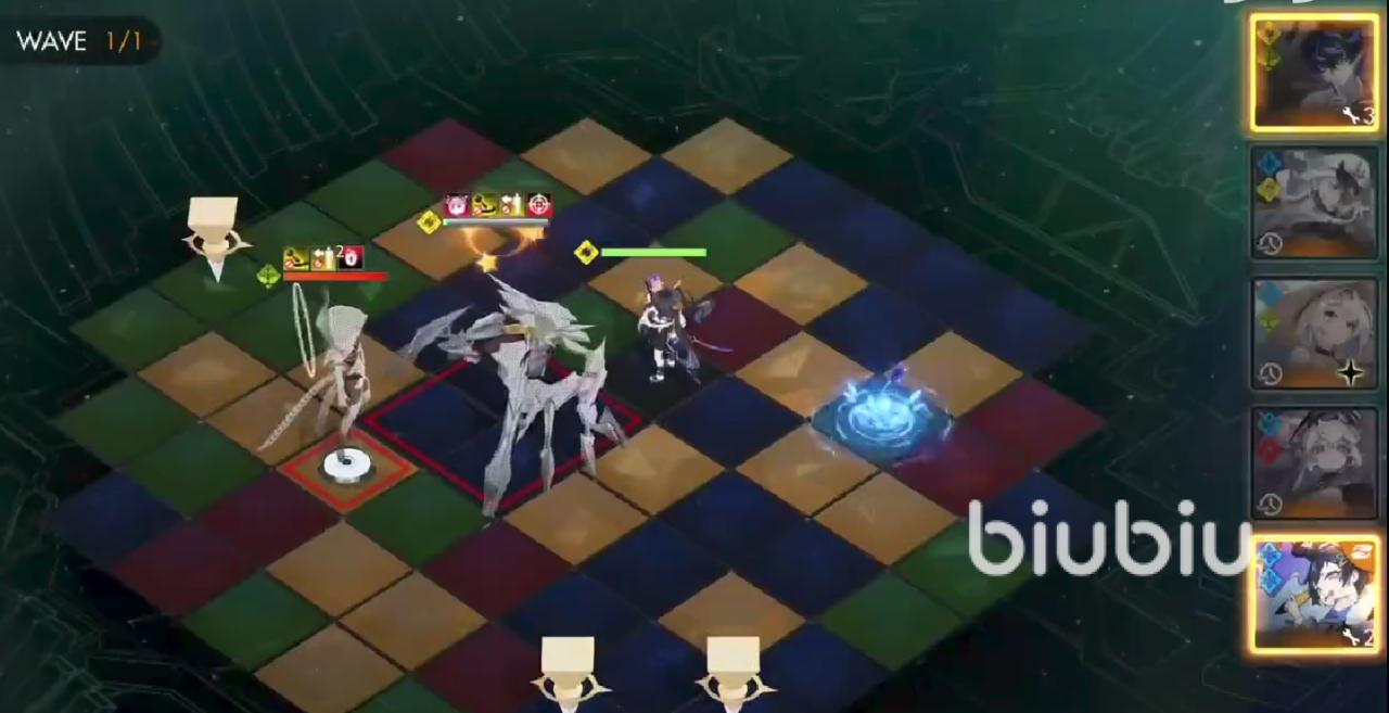 一般情况下,第一波运气好,凹到一个良好开局,第一轮伤害就可以使对面的boss或者他的肉盾大残。打出一个五人连锁输出伤害,之后再视情况让肥鸭放地雷。只要能打出连锁,造成高额伤害即可,主动伤害方面,可以暂时忽略掉。不过也有些时候瞬移看着没有掉血,可能是玩家们角色中鹿客没有触发技能,这个没有多大关系,后续输出再补上来即可。