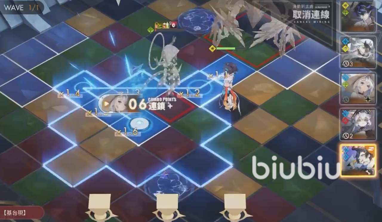 先开转移技能,让菲莉诗的技能开启后,跳到boss的后方和侧方,或者一些较为有利的属性格子中,在使用巴顿强行修改格子属性,尽量在该回合内达成水属性格子占绝大多数,且呈包围的态势。当然,如果有特别情况下,一些水属性格子没有连接到,那么可以适当的开青瞳的技能强行转变格子属性,为后续的持续输出做好准备。
