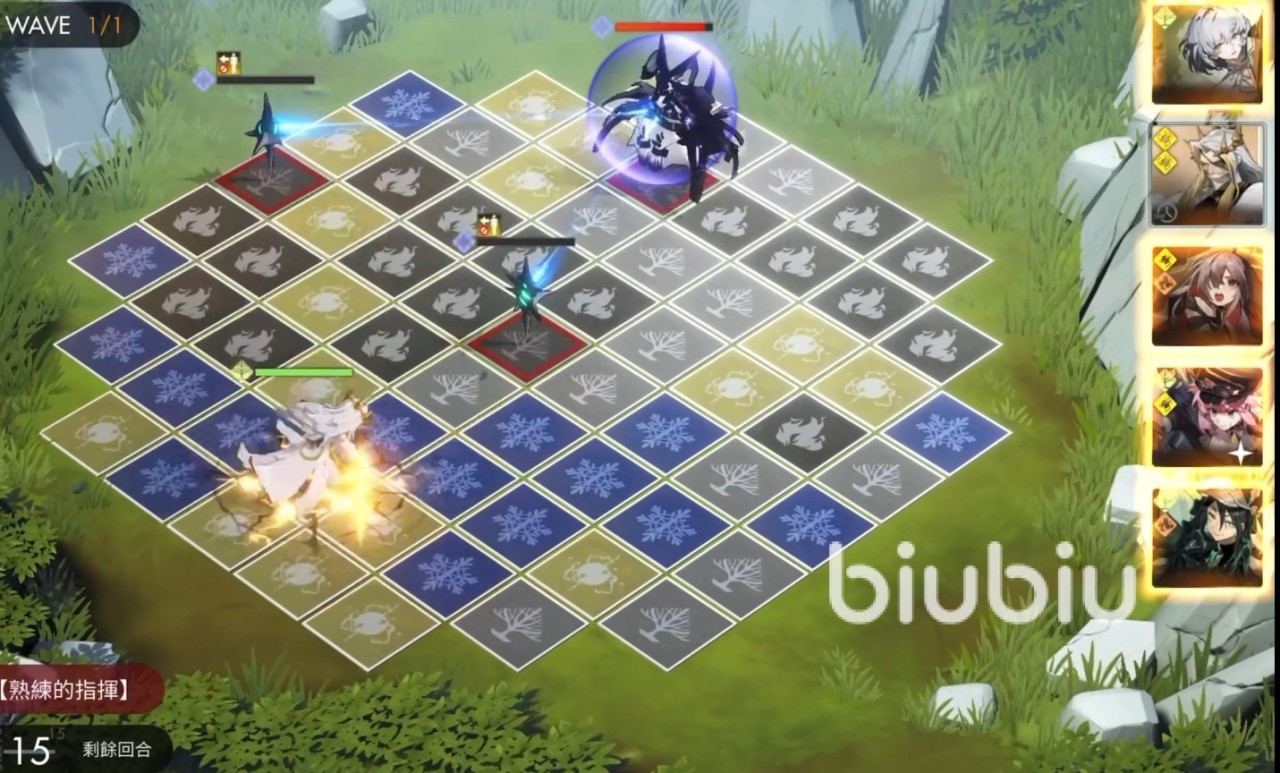这是一个2输出+2转色+1奶妈的搭配,卡戎是队长,用来输出,召唤出火车来碾压敌人,伤害非常高,在副本中很好用,醒山也是同样的高攻击力狙击手,尤其是在配合卡戎的时候,可以拉敌方的仇恨值,把小怪清掉,在第一回合的时候就可以清理全图小怪,刚好在这个副本的第一回合时,敌方会进行高频率的输出,并把自己的护盾加起来,同时回血,小伙伴这个时候一定要让卡戎和醒山集中火力进攻,不要给它刮痧,否则敌人掉血的速度会特别慢。