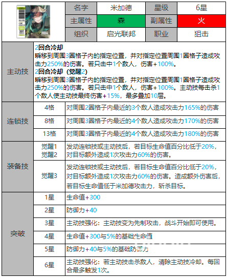 在白夜极光这个游戏中,米加德是森属性的六星级角色,属于一个狙击的角色位置,可给以白夜极光的小伙伴们增加容错率的传送机会。米加德的连锁技能可以对周围圈内的敌人造成165%、170%、180%的伤害,这个是随着对局的连接格数叠加的。在森属性的角色中,米加德非常值得白夜极光的小伙伴们选择。