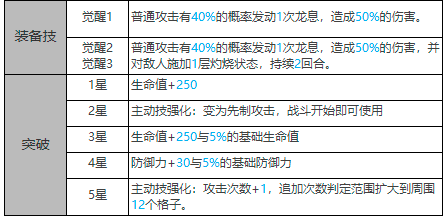 同样的,丽奥娜的装备技能的觉醒也会增加伤害,到觉醒3这个程度的同时还可以施加一层的灼烧。升星也是除了会增加生命和防御以外,到了五星的时候会强化主动技,增加一次攻击次数并且追加次数判定范围会扩大。总体上来说,所有的主动技、连锁技和强化突破都是增加了伤害的数值,并且火属性的格子越多伤害越大,这些都表明了丽奥娜是一个有着大范围攻击性的光灵,但是自身的能力程度取决于队友的搭配,因为格子的属性首先就是需要转换光灵去操作的,如果没有适合的火属性转换光灵,那么小编建议小伙伴们不要培养丽奥娜这个角色。