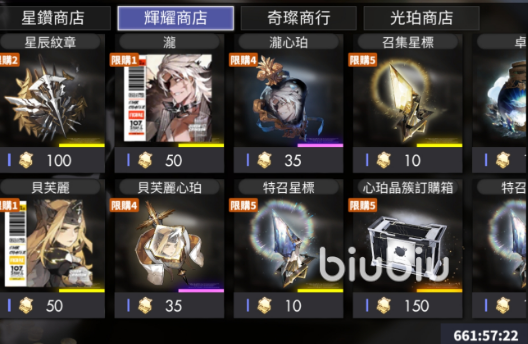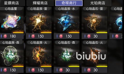 在辉耀商店中,玩家们可以兑换当期的五星光灵的心珀,还可以兑换召集星标以及特招星标,最多可以兑换5个哦!当然好感礼物也是可以兑换的,但是小编认为用珍贵的辉耀来兑换礼物并不是很划算。奇璨商行则可以兑换心珀晶簇,心珀晶簇一旦集满5个,可以直接兑换一个六星光灵的心珀哦!