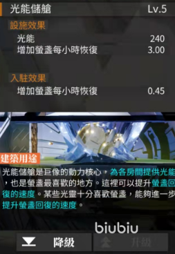 首先就是最主要的自动回复了,众所周知,荧盏是可以自动恢复的,但是玩家们可以优先升级“光能储藏室”这个房间,光能储藏室可以有效提升玩家们的荧盏获取速度,同时部分光灵具有“星光通晓”技能,入住了光能储藏室后可以大幅提升荧盏的获取效率。
