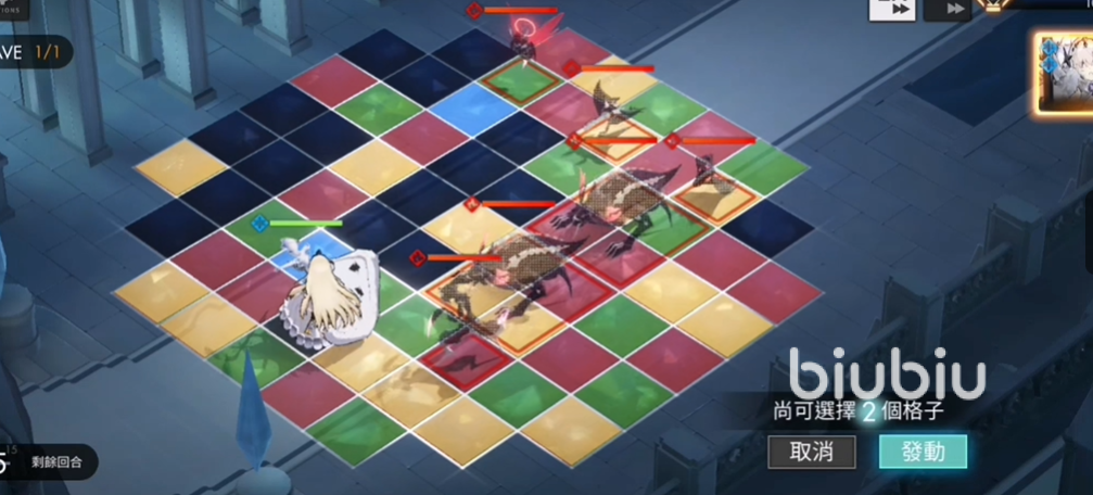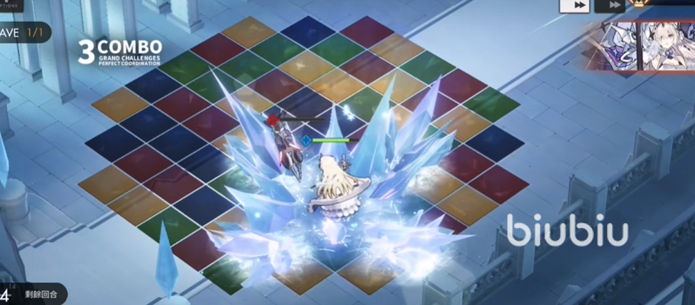 首先,让我们来看一下伯利恒自带的技能。伯利恒的主动技能为选择指定数量的格子将其竖向转变,不论原来是是什么都将会被变成水属性,冷却时间为4回合。