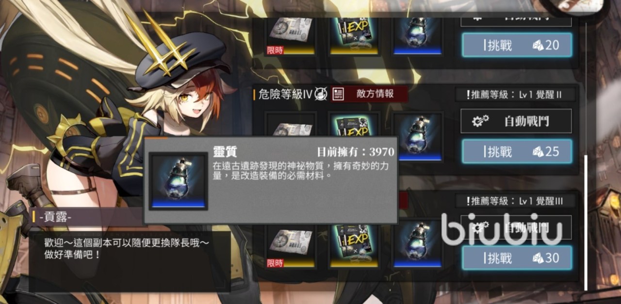 如果当前的练度打不了更高等级的主线或者尖塔,那么就先去刷突破材料和一些资源副本。查看单个光灵的突破页面然后找到缺少什么材料,会指向对应的产出关卡。一般可以设置自动战斗,比如一次性打6次。因为给一个光灵升级、强化装备、觉醒等等要消耗很多游戏内金币,所以试炼金币之类的资源本肯定是要多刷一刷的。