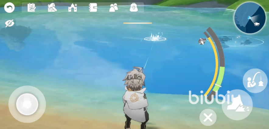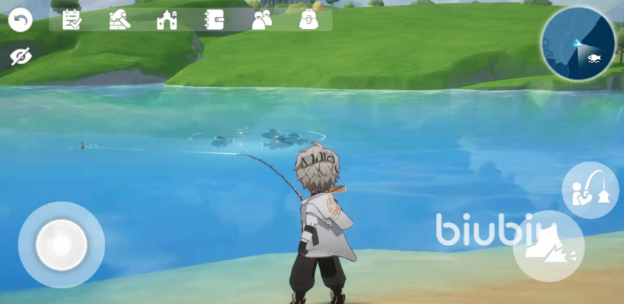 之后玩家们对着屏幕中的“鱼群聚集处”,点击界面右侧的钓竿键就可以直接进行钓鱼了,一般来说,一条鱼上钩大约需要十几秒,小伙伴们一定要耐心等待,碰到移动键的话,钓竿可就自动收回来了。