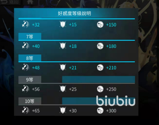 其实,在这款游戏中,礼物可是十分重要的提升战力的道具,首先,好感度会关联到光灵们的攻击力,每一级的好感度都可以提升光灵们的攻击力以及防御力,当玩家们将一个光灵的好感度提升到十级之后,是可以加成足足65点攻击力的,也就是相当于十级的属性提升。