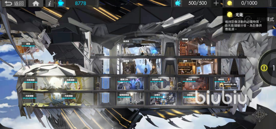 这时候玩家们可以依靠给巨像前端的“光能储藏室”升级来提升光能的上限,基本上升级一次的话可以提供50点光能值,这是“开源”,当然玩家们也可以进行“节流”,在前期巨像材料不足的情况下,可以点击房间的“降级”系统来让房间降级,这样的话,玩家们就会有空余的光能多出来了。