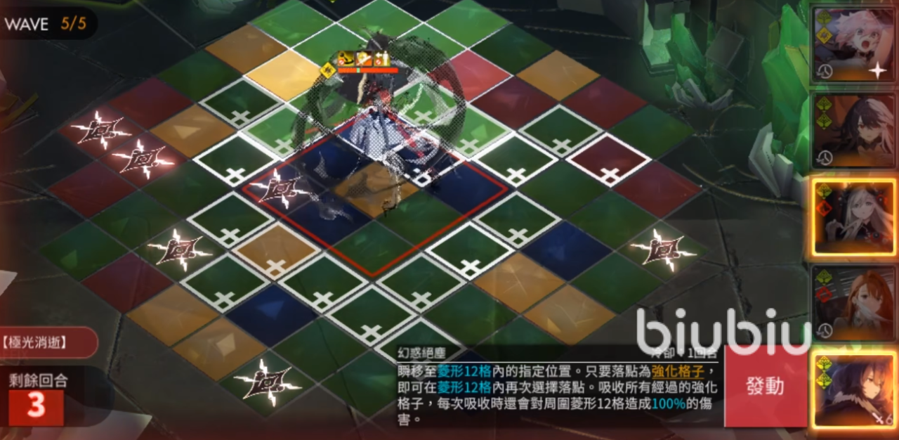 青瞳:抽到必培养的森水属性爆破角色,一回合冷却CD的蜃影,提供攻击或者变换水属性格子的能力,灵活性很高。