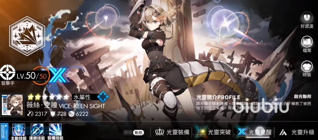 薇丝空瞳:过主线免费获取的水狙角色,培养难度低,拥有独特的锁敌功能,在打精英怪关卡时很好用。