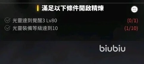 当玩家的光灵等级来到80级,到觉醒3并且装备来到10级,系统就会自动解锁装备精炼玩法。大家找到“光灵界面--光灵装备—装备洗炼”,对已开放此功能的光灵进行装备洗炼即可。