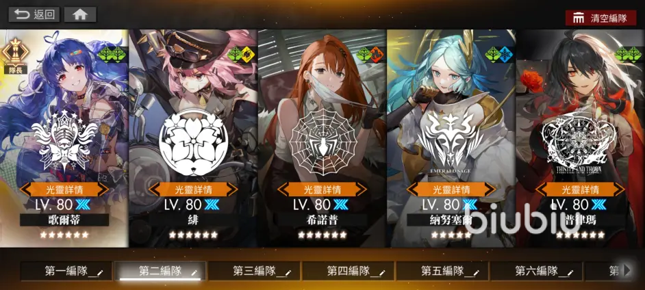 这里的阵容就可以根据下方给出的图片进行搭配,这个队伍里面,如果歌尔蒂的主动技能是2cd,那么就能与短转的主动对轴进行搭配,到时候就能使用给出的强化格来规划更好的路线。