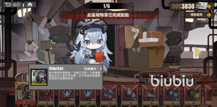 在资源整备中心中,一共分为6个区域,前5个区域除了可以获得光珀以及各式各样的突破材料外,玩家们还有几率抽取到阿纳托利的心珀哦,而且,抽奖次数是有着定额的,无论是脸多黑的小伙伴,只要将奖池搬空的话,都是可以获得满破的阿纳托利的。