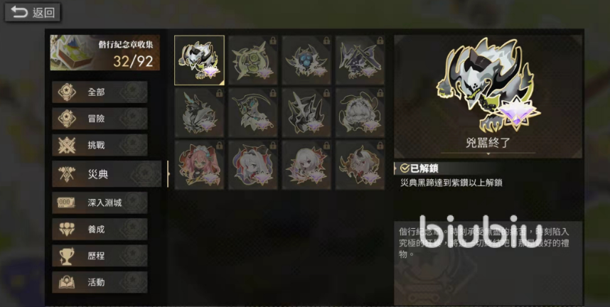 之后则是灾典的奖励,当玩家们在灾典中达到了不同的段位后就可以获得相对应的boss纪念章了,不过灾典毕竟是困难本,各位小伙伴们还是在考虑清楚了自身的战力后再进行挑战比较好。