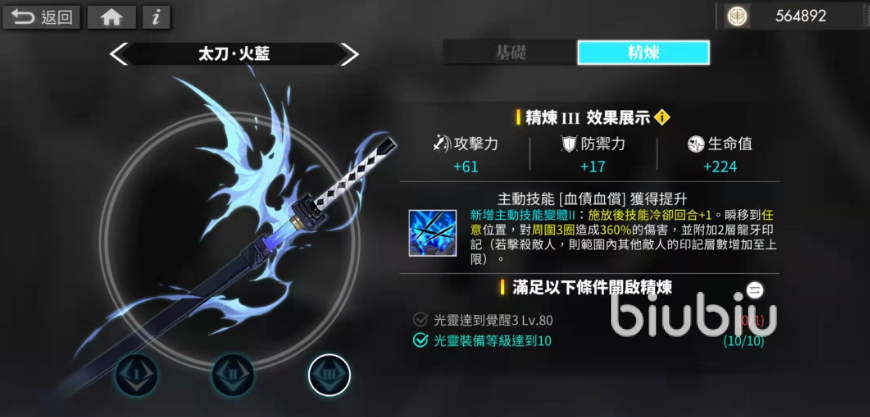 2023年05月25日 10:33 来源:宁静飞椰蛋树水刀作为水系中常年霸占T1位置的爆破型光灵,一直深受水系玩家们的喜爱,但随着版本的更新,后续出来的水系输出类光灵也渐渐完全不逊色于水刀了,不过幸好随着白夜极光水刀精炼系统的开启,让水刀又获得了一次显著的加强,可以说是“第二春”了,那么水刀的精炼提升都有哪些呢?