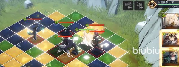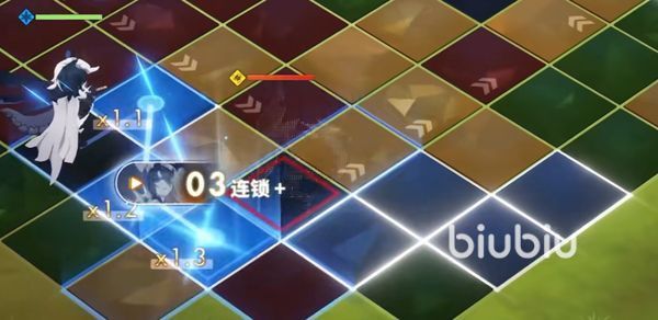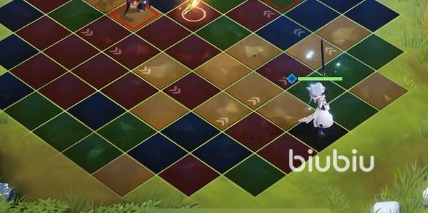 另外,角色除了职业的区分之外,还有属性区分,总共也有四个属性,分别是森,水,火,雷,这四个属性相互克制,也刚好对应了对战中的四个格子颜色,在战斗中只有队长可以走不同色的格子,而其他普通角色都只能走自己本属性颜色的格子,只有这样才能触发连锁技能。