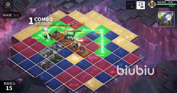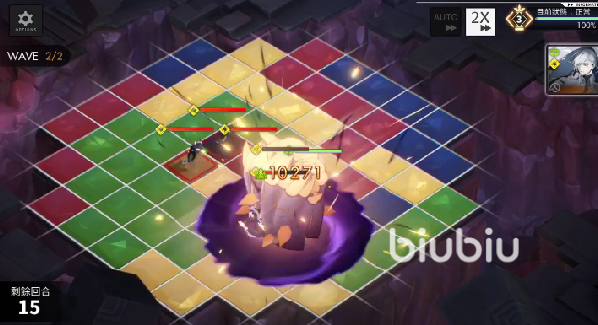连锁技能掩护射击,在最低连锁四格状态下可以对周围三圈内的三名敌人造成150%的伤害。攻击加成并不是很高,但是触发范围很远,在边角对敌人削减血量也是很不错的。