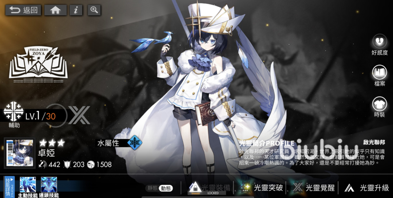 卓娅与菲莉诗同为水属性,在游戏中是人人开局就能够获得的光灵。虽然仅仅只是三星光灵,但她的连锁技能和主动技能都会为队伍中的光灵带来较为客观的血量回复,在达到突破三级后,会为原本技能冷却时间就只有两回合的卓娅再次带来技能冷却缩减,大大提高队伍中光灵的存活能力。