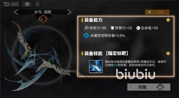 装备技能效果在一级的时候,可以在对敌人造成高额伤害的同时,还可以对其额外获得一层瞄定印记,该印记可以将本次伤害提高1%,三级的时候,这层印记所增加的伤害会提高1.3%,10级也就是最高级的时候,该印记可以直接对敌人额外造成2%的伤害。