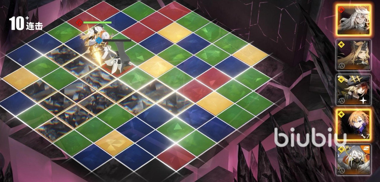 贡露和贝芙丽是雷队中两个短转,小编先说其中之一“贡露”。将附近5个水和火格子转雷,0破就能有先制攻击,在起手时就非常舒适,拥有雷系作用范围很大的连锁技能,其装备技能有附加的麻痹效果,尽管贡露的输出量不算高,但已经足够新手期作为过渡使用。