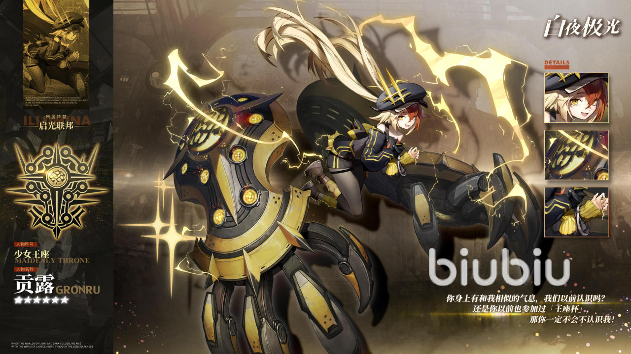 雷队强力的aoe输出是离不开转色角色的,两个短转的大致介绍就是这样,那么以上就是“白夜极光雷队双短转角色介绍”的所有内容了,在九游专区中白夜极光相关攻略还有不少,欢迎各位小伙伴去查阅。