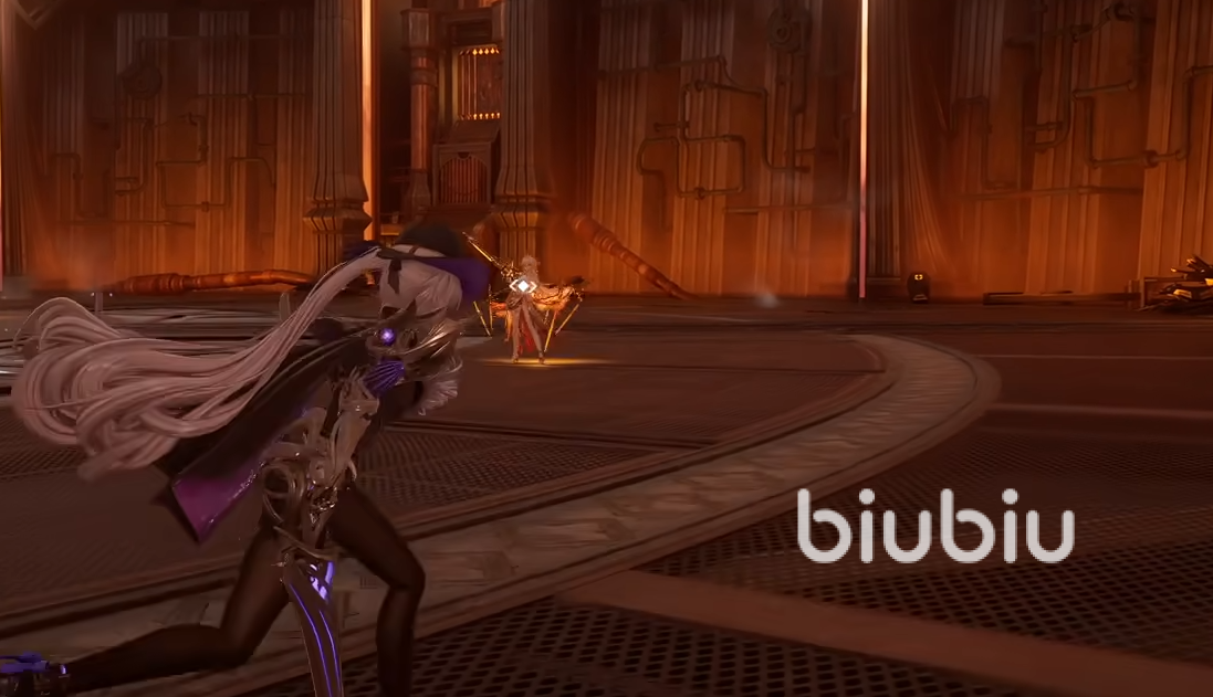 到了剩下一半血量时,她就会跳下车了。这时她的防御力较弱,但是会释放多段的火焰连续斩击!身上依旧会出现光圈,需要连续按下多次shift键,才能躲避开来。当她结束攻击后,大家就要用机枪进行攻击了。最后继续几轮攻击,即可将其斩于马下啦!