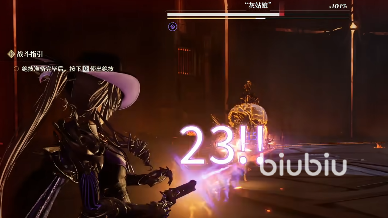 灰姑娘的出场其实特别华丽,从天而降的她直接让大家无法直视。还在那里狂笑,还会骑着大马朝大家冲来。这时她的身上会出现两道光圈,按下shift键即可快速躲避。躲避成功之后,就可以按冲刺键快速逼近boss的身边,并快速出刀,即可对她造成不小的伤害!另外她身上的火焰并不会造成实质性的伤害,大家无需躲避!