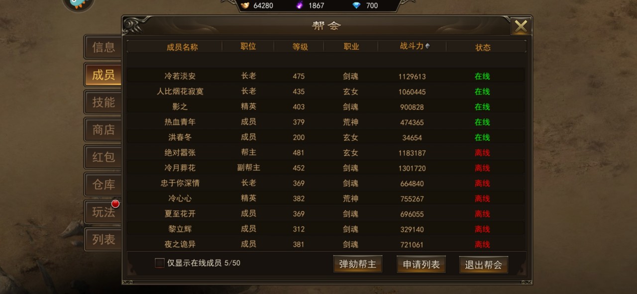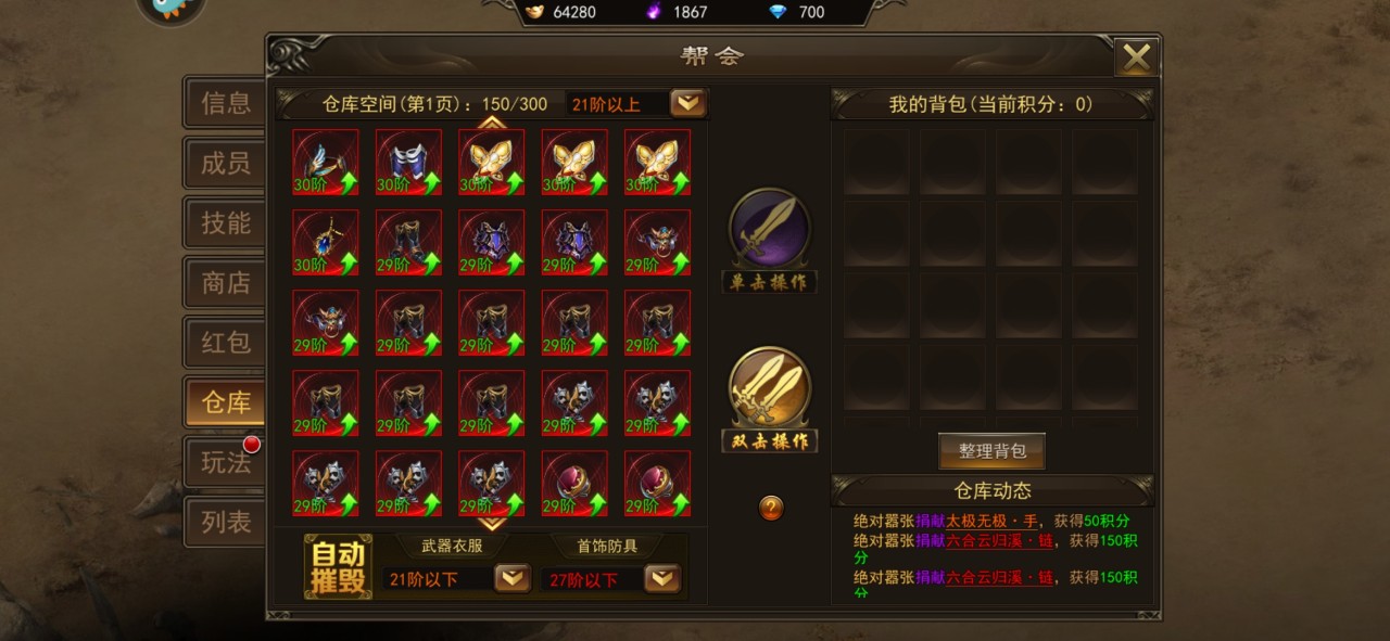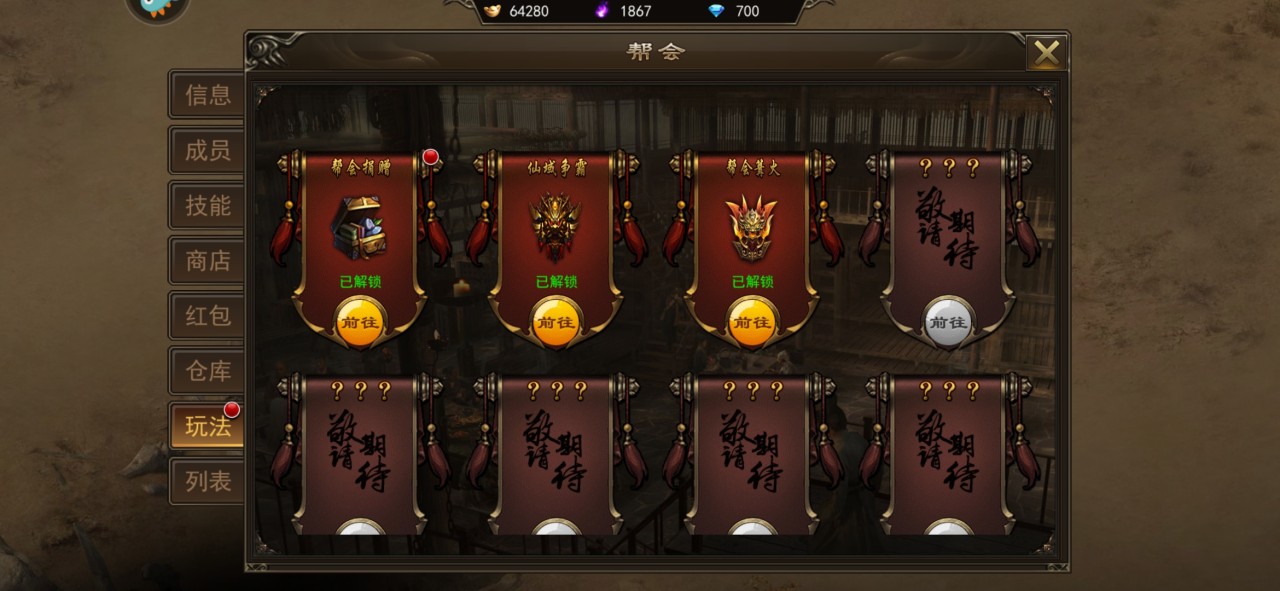 有了帮派之后,大家可以做的事就有很多了。比如学习独有的帮派技能,木岭诀可以增加生命,烈火诀可以增加暴击伤害,厚土诀增加命中等;抢红包也是一个不错的玩法,有时候当你的大脑会发放一些红包,大家可以第一时间抢夺到很多钻石;如果积分够的话,还可以在帮派仓库中兑换超级极品装备,大大提高自己的战斗力。