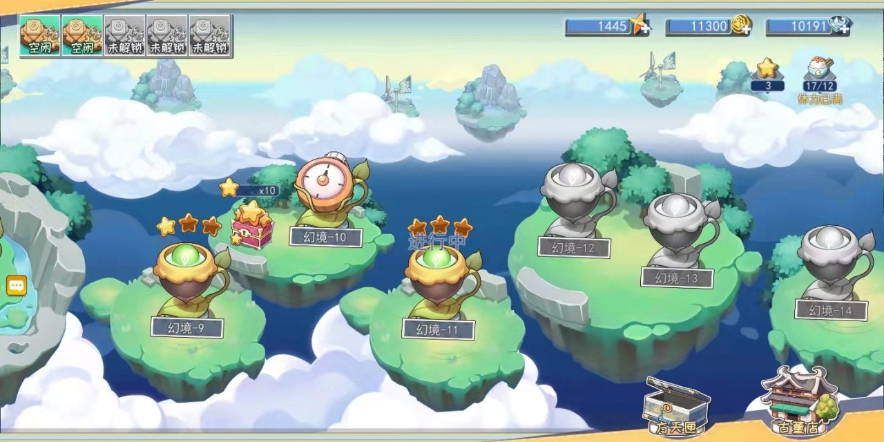第二种玩法是幻境,幻境属于游戏里的副本玩法,玩家需要进行合成获得一个完整的钥匙即可通关。每一局关卡都是有时间限制的,另外,玩家要想获得高分,也是需要查看幻境左侧的评星条件,三个都满足的情况下即可获得满星。玩家所获取的星级越高,所能获取的奖励就会越丰盛。