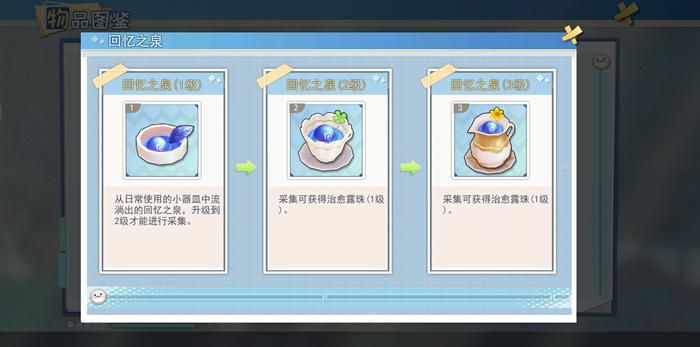 回忆之泉的升级主要是通过地图上的合成解锁。