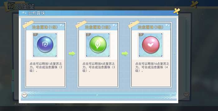 治愈露珠的等级越高释放获得的复苏之力就越多。