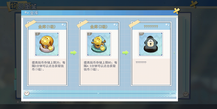 升级金库可以提高钱币储存上限,同时每间隔一段时间还能获得钱币,金库等级越高,间隔时间就越短。