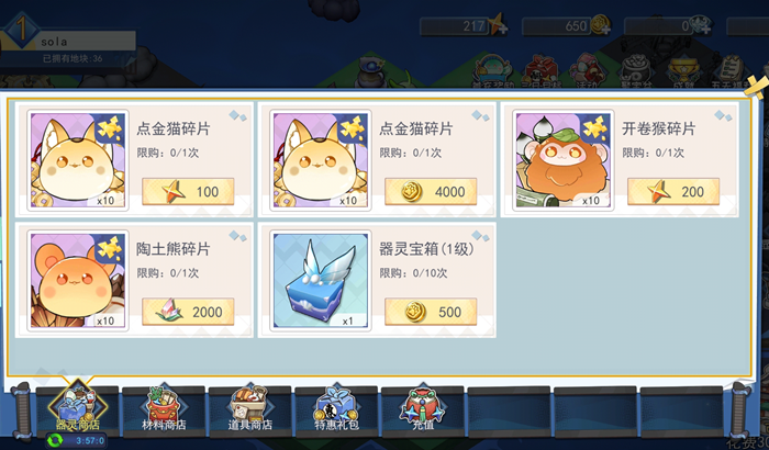 3、最后是需要在方天匣中通过合成治愈露珠解锁土地,有一些器灵被封印在里面,需要通过解锁获得。